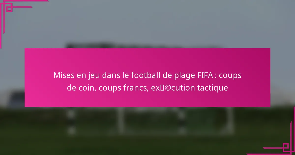 Une exécution efficace des coups de pied arrêtés dans le football de plage FIFA repose sur une planification stratégique, une communication et une pratique. Les entraîneurs devraient se concentrer sur le développement de tactiques claires, s’assurant que les joueurs comprennent leurs rôles, et pratiquer régulièrement ces scénarios pour améliorer la performance lors des matchs.